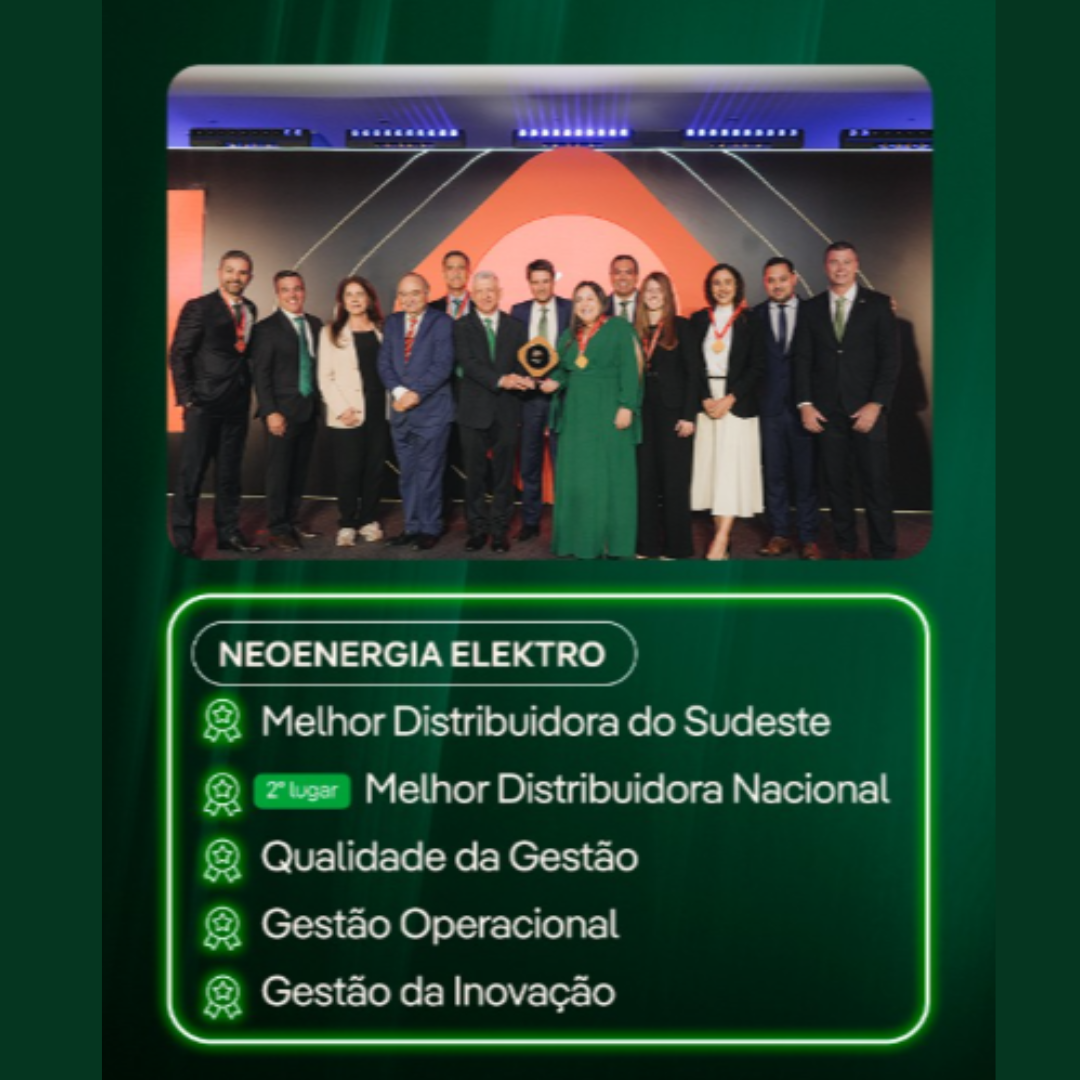 Responsável pela distribuição de energia para mais de 3 milhões de clientes em parte dos estados de São Paulo e do Mato Grosso do Sul, a Neoenergia Elektro ganhou como a melhor concessionária do Sudeste e também foi premiada nas categorias Qualidade da Gestão, Gestão da Inovação e Gestão Operacional entre empresas com mais de 500 mil consumidores. A distribuidora também ficou em segundo lugar na categoria nacional.
